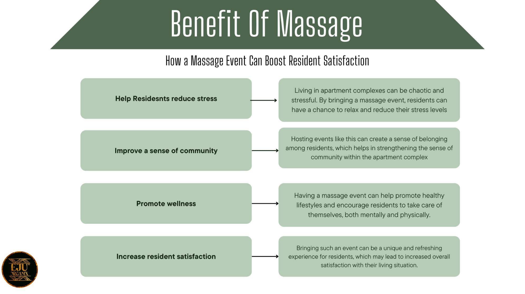 Our Massage event within your complex allows residents to experience the full benefits of our CBD topical product through a professional massage and learn about the power of shea butter combined with CBD in promoting relaxation and reducing stress.